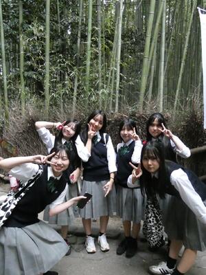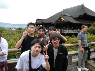 まず朝に全員で清水寺を訪れました。生徒たちは清水の舞台に見入っていました。昨日の嵐山に引き続き、ここにも外国人観光客が非常に多くいました。また、北海道から来ている他校の修学旅行生の姿も見られました。