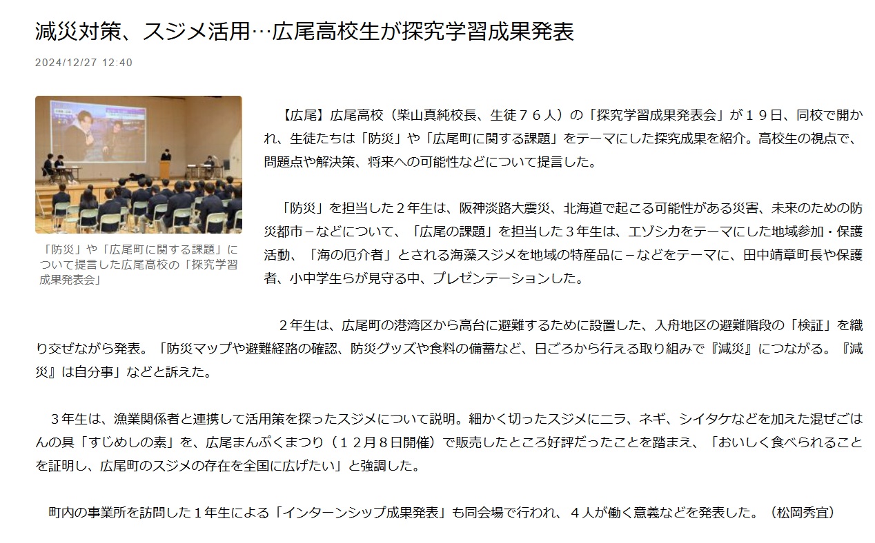 十勝毎日新聞12月27日 減災対策、スジメ活用…広尾高校生が探究学習成果発表.jpg