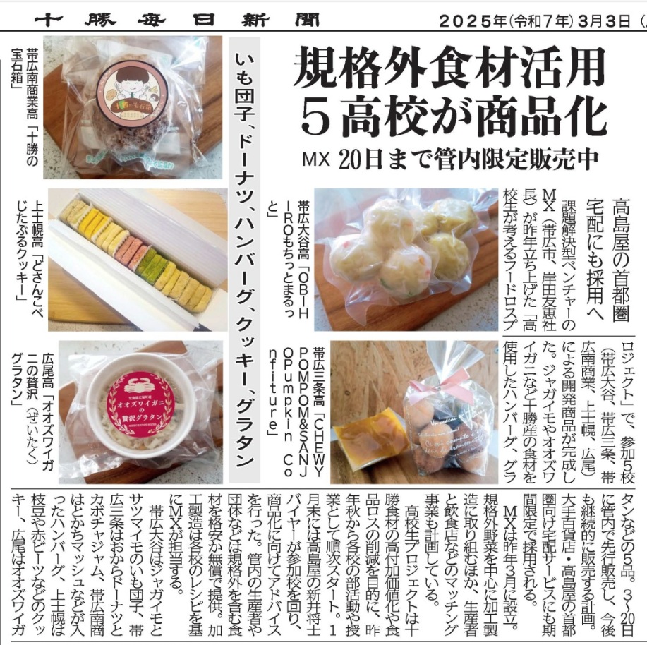 十勝毎日新聞3月3日 規格外食材活用5高校が商品化.jpg