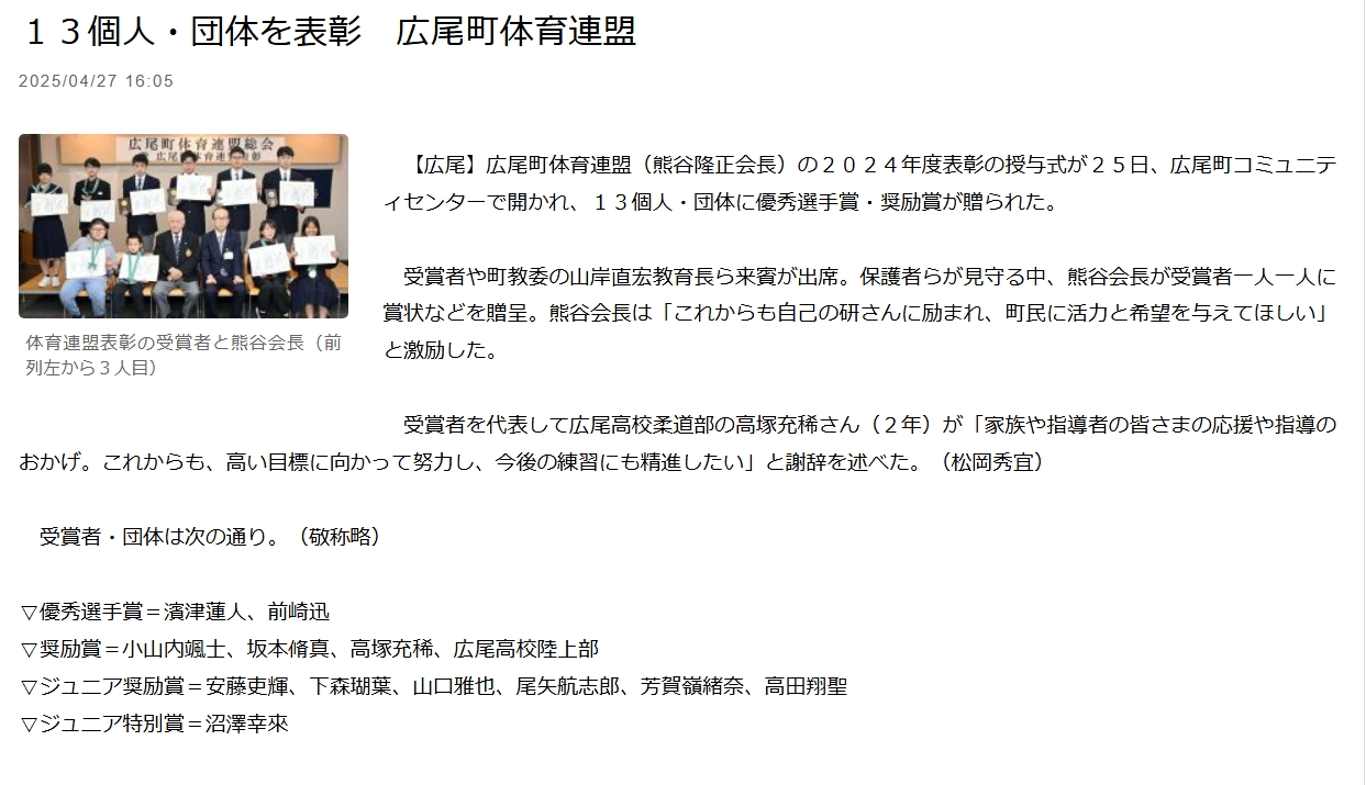 十勝毎日新聞4月27日 13個人・団体を表彰 広尾町体育連盟.jpeg