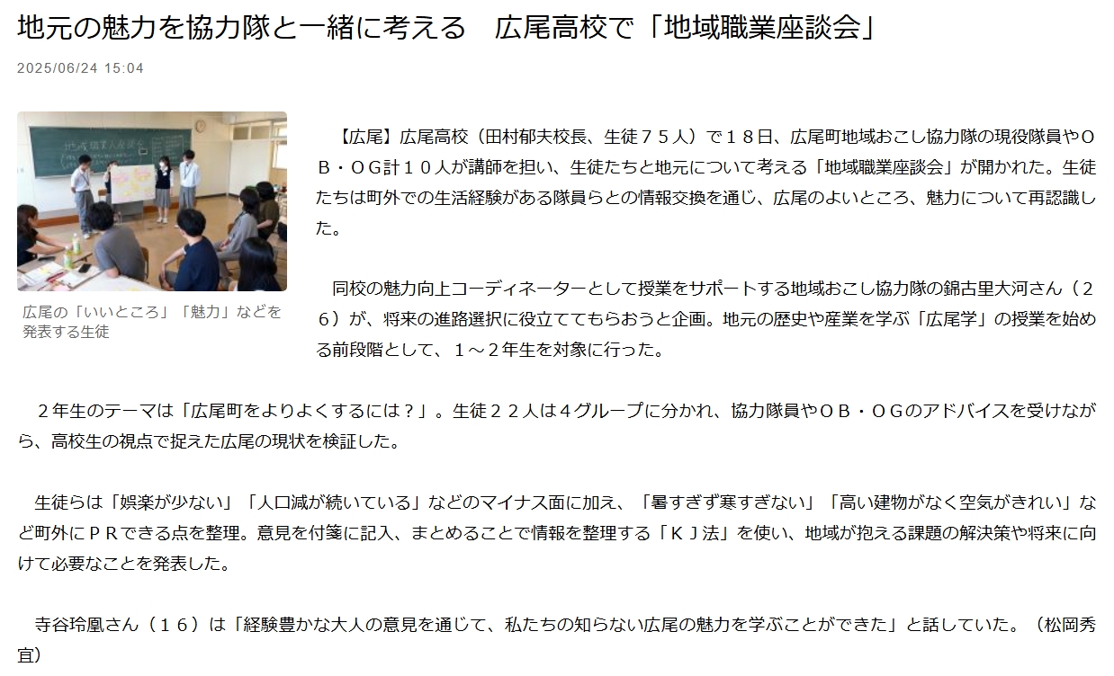 十勝毎日新聞6月24日 地元の魅力を協力隊と一緒に考える 広尾高校で「地域職業座談会」.jpeg