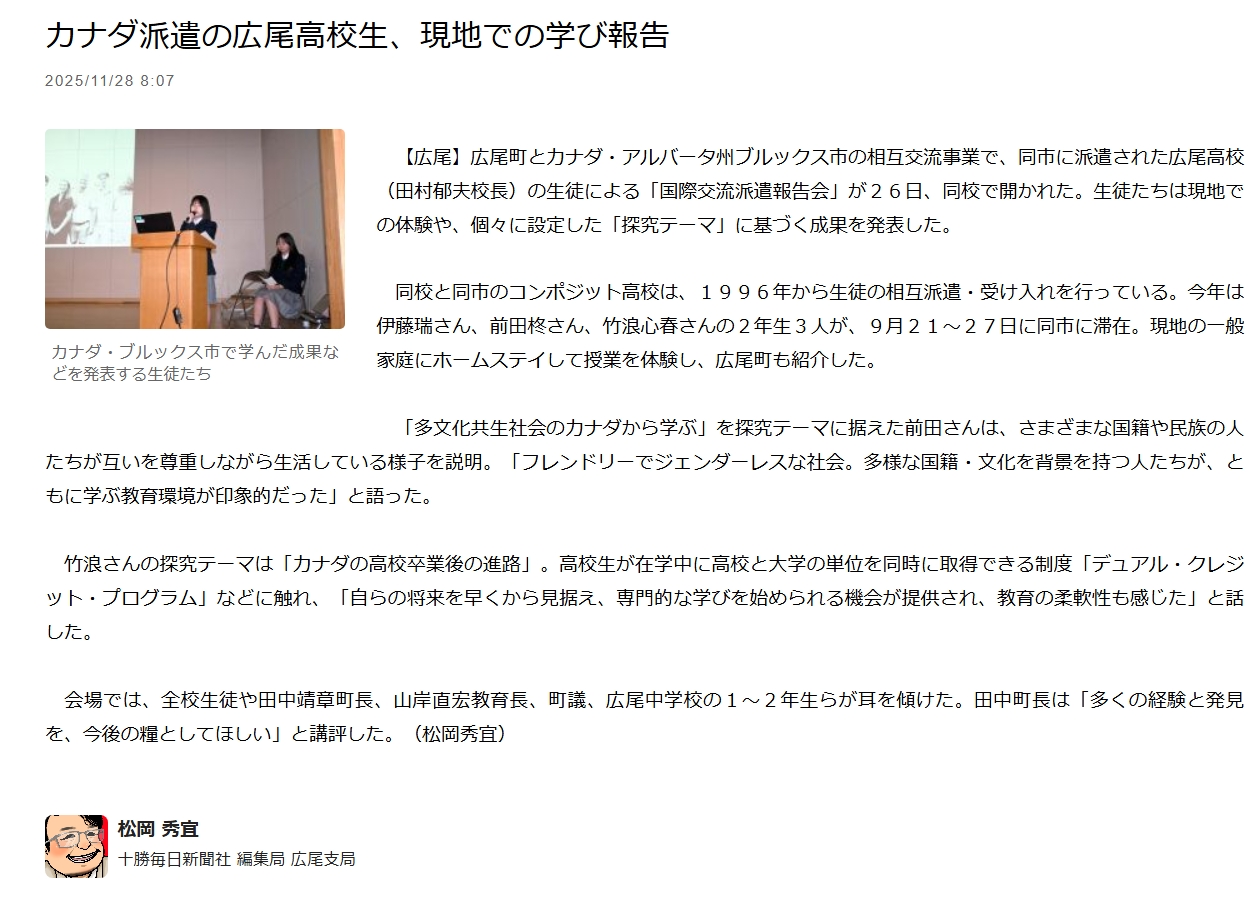十勝毎日新聞11月28日 カナダ派遣の広尾高校生、現地での学び報告 11.28.jpeg